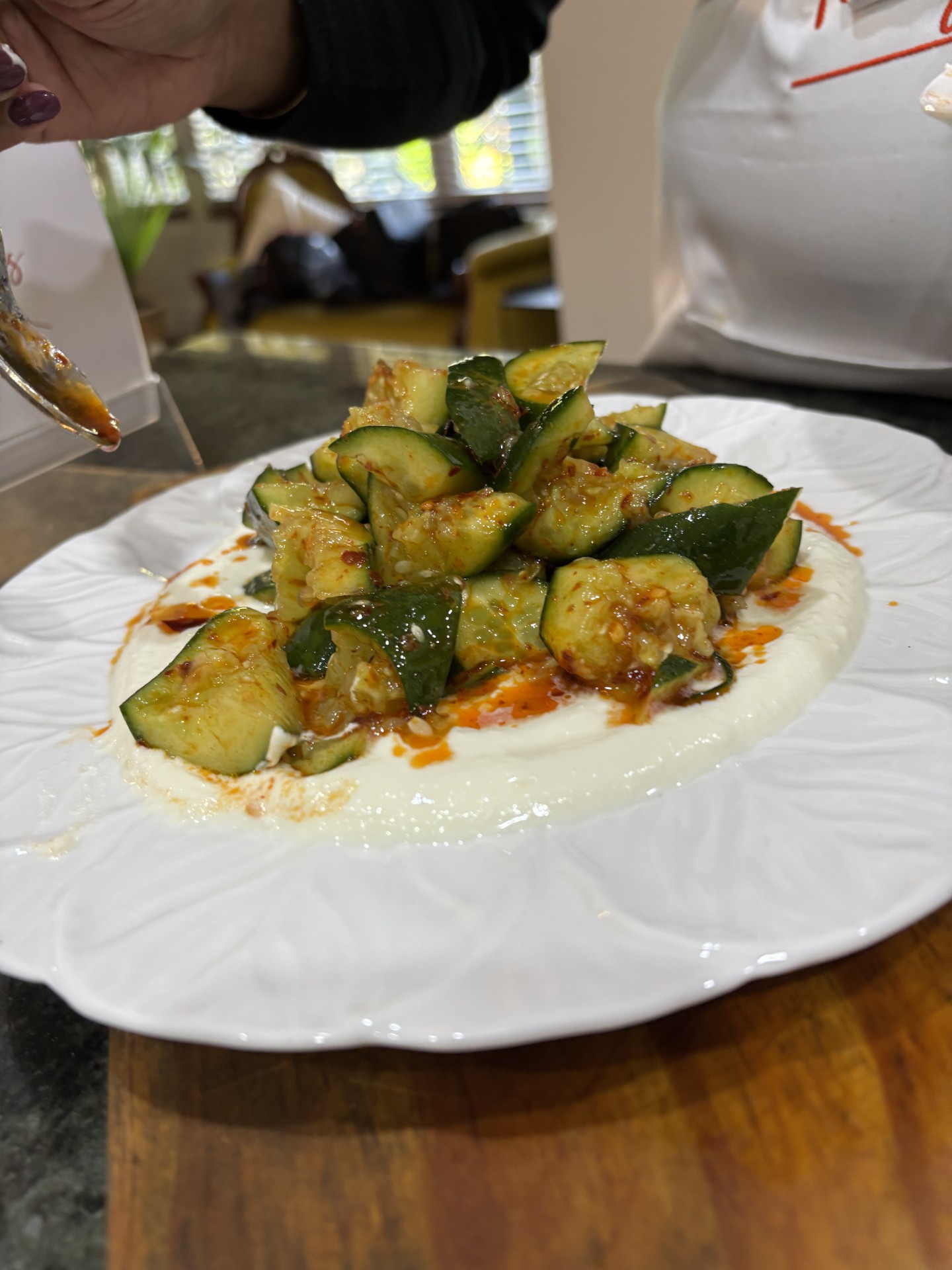 Smashed Cucumber Salad with Greek Yogurt & Chili Oil